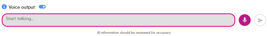 We introduced voice interaction features to improve accessibility and give users more flexibility when using Nia. A voice output toggle lets users choose whether responses are read aloud, while a microphone button next to the submit field allows users to speak their questions instead of typing.